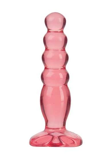 Doc Johnsons Crystal Jellies Anal Delight is a soft and flexible graduated anal plug. Bounce on the bubbles or use the flared base as a handle to simulate anal beads. Rounded for ease of insertion each bubbled tier promises a memorable experience. Available in Pink Clear and Purple. Made from phthalate-free body safe material which includes Docs anti-bacterial Sil-A-Gel formula and is proudly made in America.