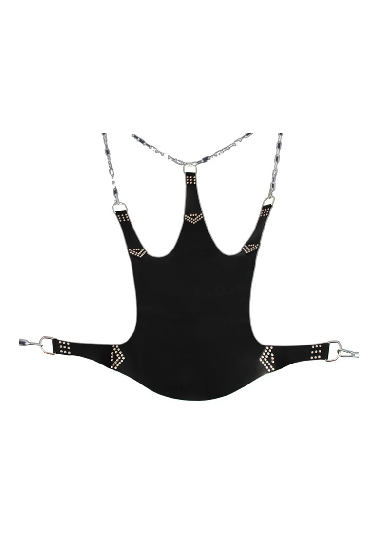 Leather Sling – 5 points – Black – Deze sling is een model dat perfect zal passen in uw speelkamer of SM Dungeon. Hij is gemaakt van leer met 5 stalen ophangpunten. Afmetingen: 113 x 122 cm – Lederen dikte 3mm