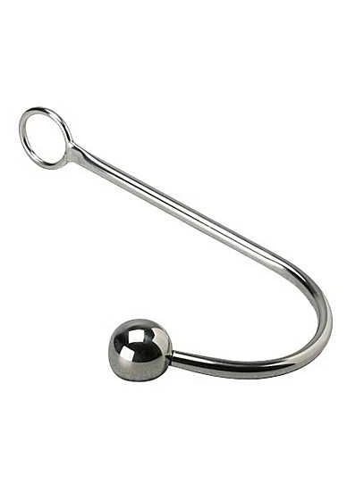 This impressive steel hook can be hooked up to ropes and other bondage equipment making sure it keeps a strong hold on its wearer. Theres 5 of insertable length (the ball and a portion of the hook). The hook then rests against the back while the ring (1.5 in diameter) is used to connect to ropes.