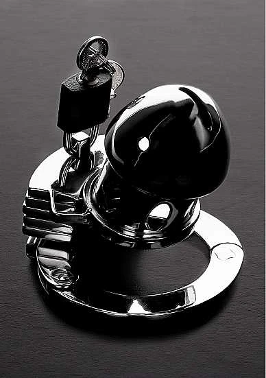 Lock up your mans cock and balls in this fully adjustable chastity cage! With a cuff-like design the base ring of this device accommodates 4 different sizes. Lock the ring in place with the pin-in-hole plate system to trap his balls in the confines of that stainless steel ring. Meanwhile his flaccid shaft will be stuck in the small metal cage with no escape! Three spacers allow you to adjust the cage to fit his length. Lock him up and watch him struggle for as long as you want! This device is breathable and includes a hole for him to urinate through for long-term use. Cage Length: 70mm. The postioning of the spacers between cage and base ring allows for further adjustment up to a further 20mm in or out. Ring Sizes: Adjustable from 40mm/45mm/ 50mm/55mm